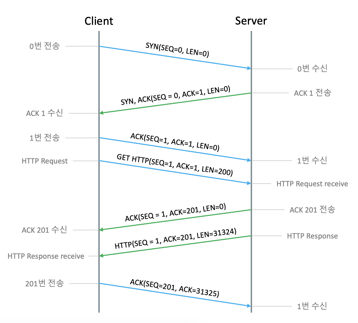 3번의 패킷을 주고 받으면서 통신에 필요한 리소스 확보 작업을 수행한다.