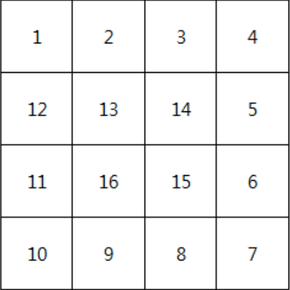 다음과 같이 정수 N을 입력 받아 N크기의 달팽이를 출력하시오.