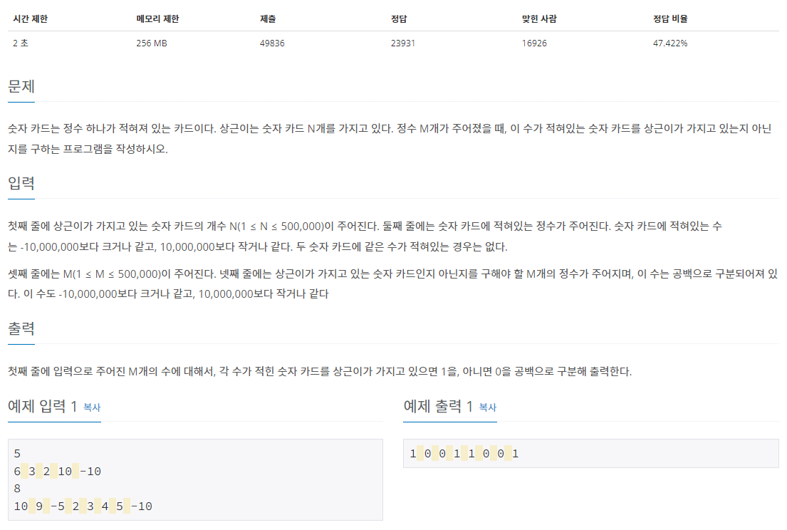 https://www.acmicpc.net/problem/10815